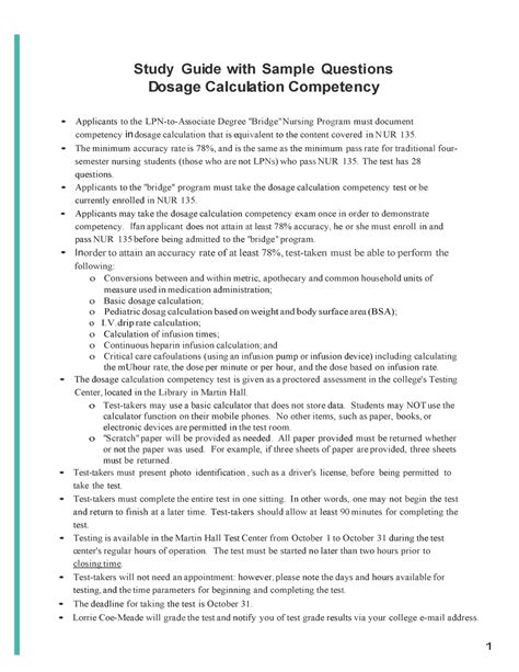 Read study guide with sample questions dosage calculation competency PDF